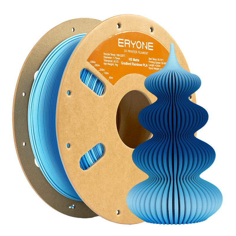 ERYONE Matte Gradient Multicolor PLA Filament features 2-3 colors with a 5-8 meter gradient, creating stunning and beautiful prints.